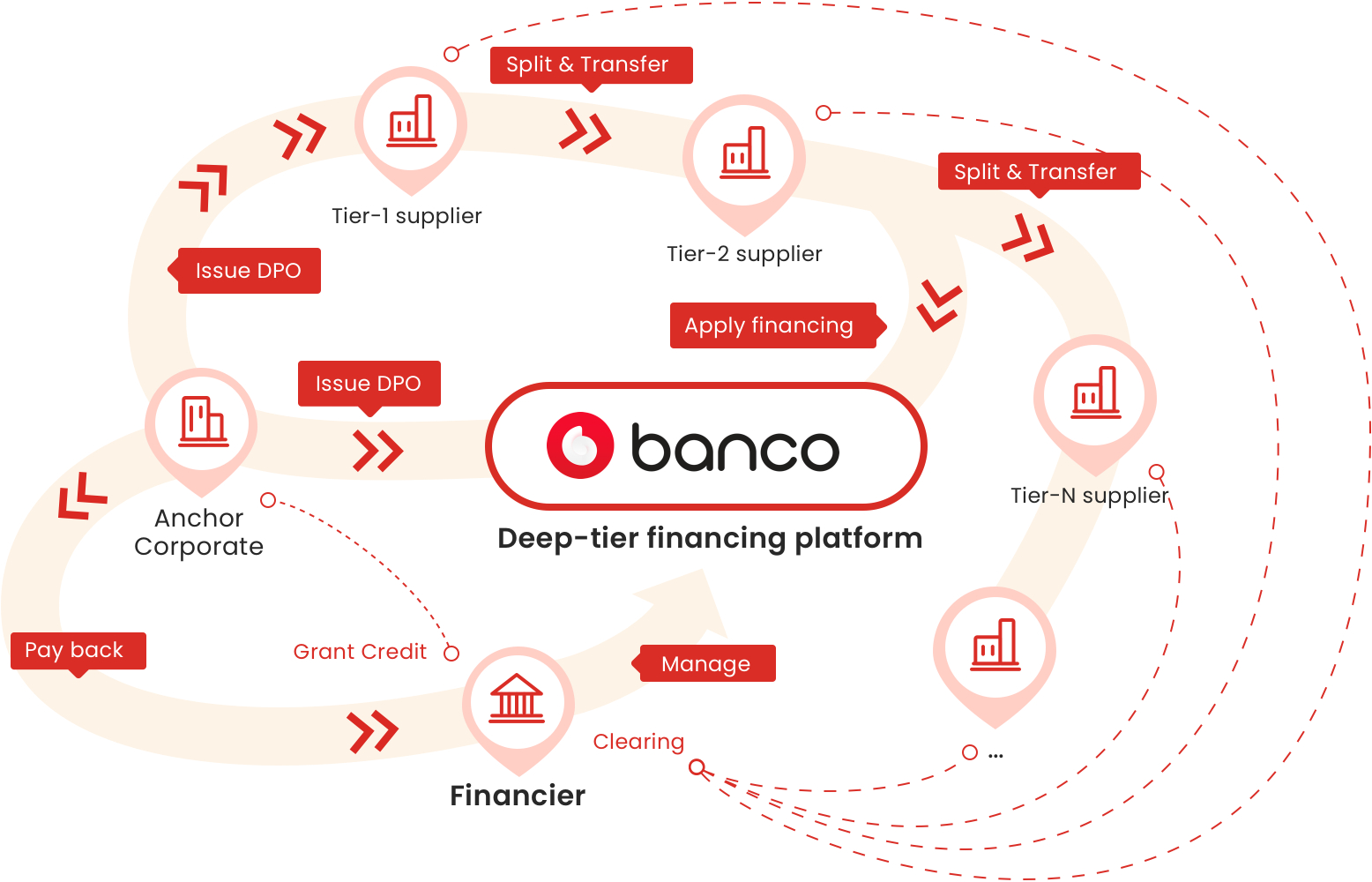 Unlike other supply chain programmes currently in the market, Banco’s innovative solution allows value to be transferred to the deeper realms of the supply chain and as a result, expand your early financing programme to benefit more suppliers in your ecosystem. More happy suppliers, stronger supply chain.